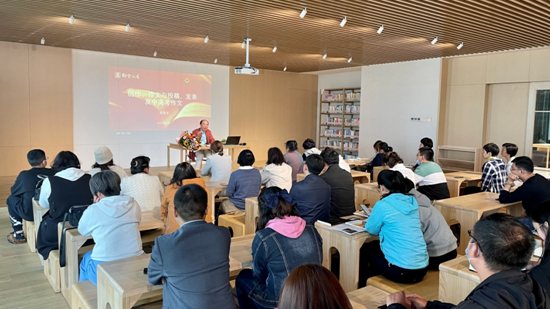 世界華文微小說研究會會長、作家網副總編凌鼎年應山東威海市文登區作家協會與觀云山居城市書房邀請,5月9日到文登觀云山居的城市書房做了一場《文學創作與投稿及中考高考作文》的講座,40多位作家與文學愛好者參與了這活動。