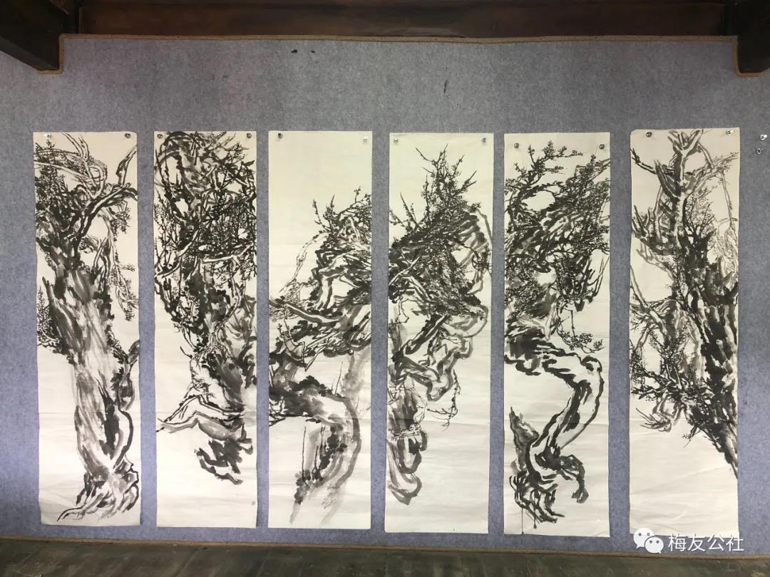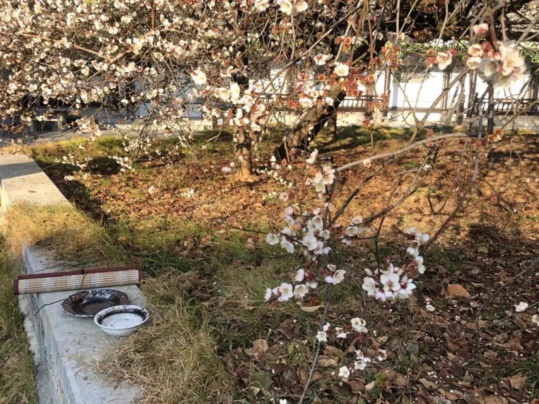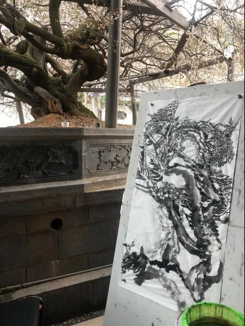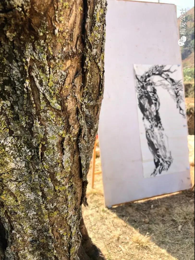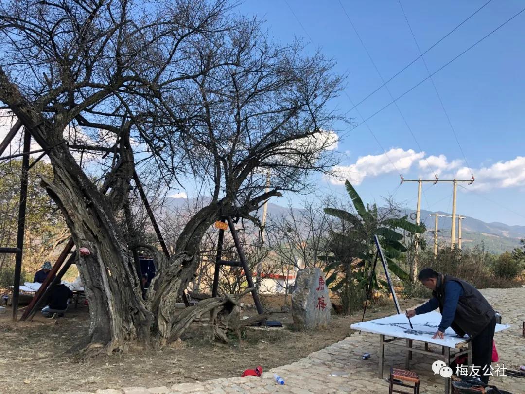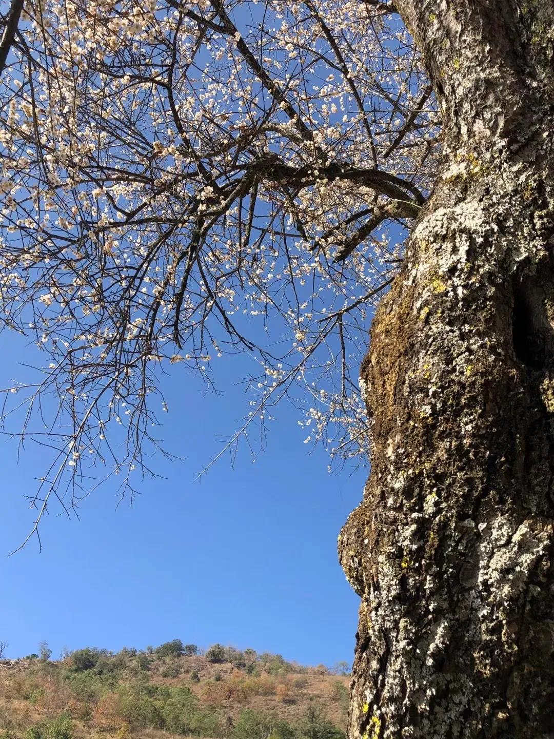 今年,我們懷揣對老梅的不舍集體留在花橋過年,這是一段非常值得的經(jīng)歷,在這期間永國寺的明茶開得正盛,我們沿著博南古道,腳踩曾經(jīng)馬幫經(jīng)過時留下的馬蹄印,去拜訪了楊升庵祠,感悟了“滾滾長江東逝水,浪花淘盡英雄”的歷史的滄桑和悠遠(yuǎn)的意境。大年初一,唐老師帶大家就開始了新年的創(chuàng)作,元梅樹下,吟詩詠唱,不亦說乎。元梅之花也隨著花期的結(jié)束慢慢開始凋謝,最后只剩下清晰可見的枝干。突然有一天:“快看,結(jié)梅子了?!蔽覀儾虐l(fā)現(xiàn)小梅子已經(jīng)慢慢開始長成了,大家才意識到在永平已兩月余,我們又一次感受著老梅從花開、花謝、結(jié)果的過程,很快武姐又可以采摘梅實(shí)泡酒了,以待來年與大家相約花橋共飲。