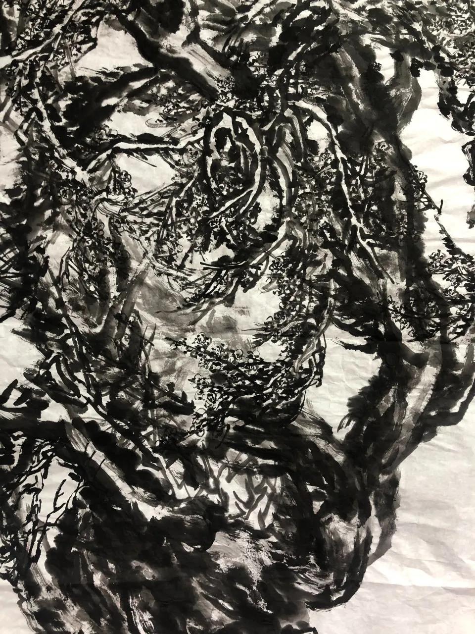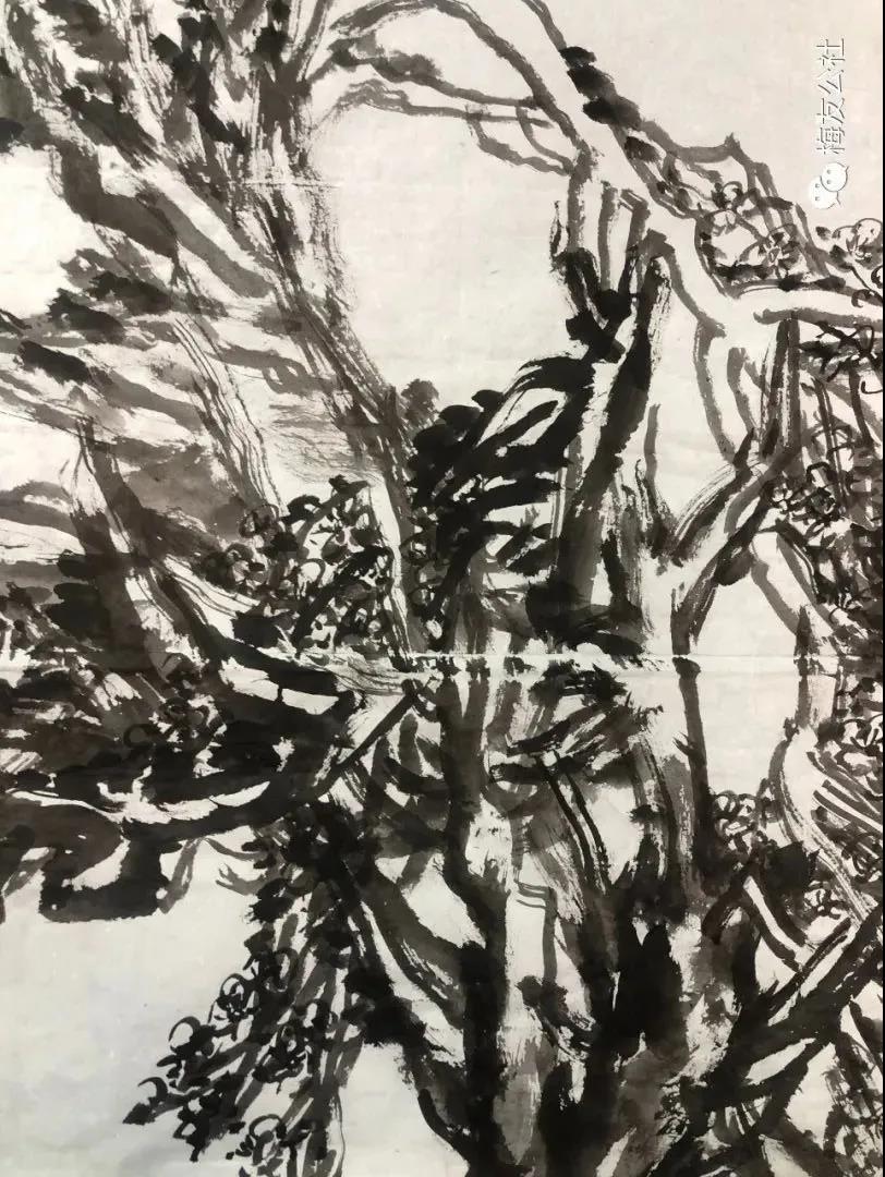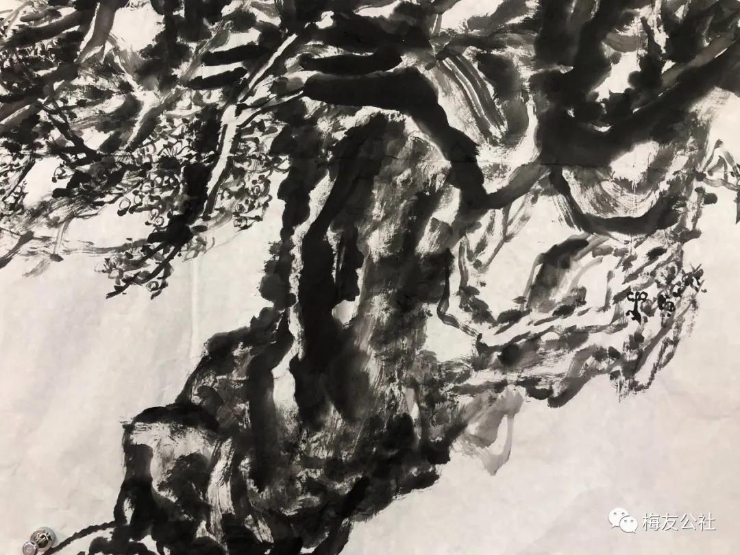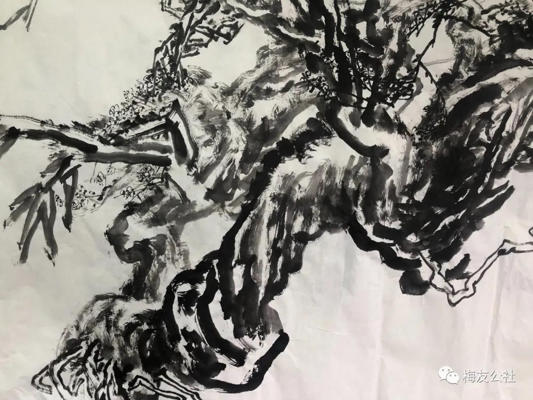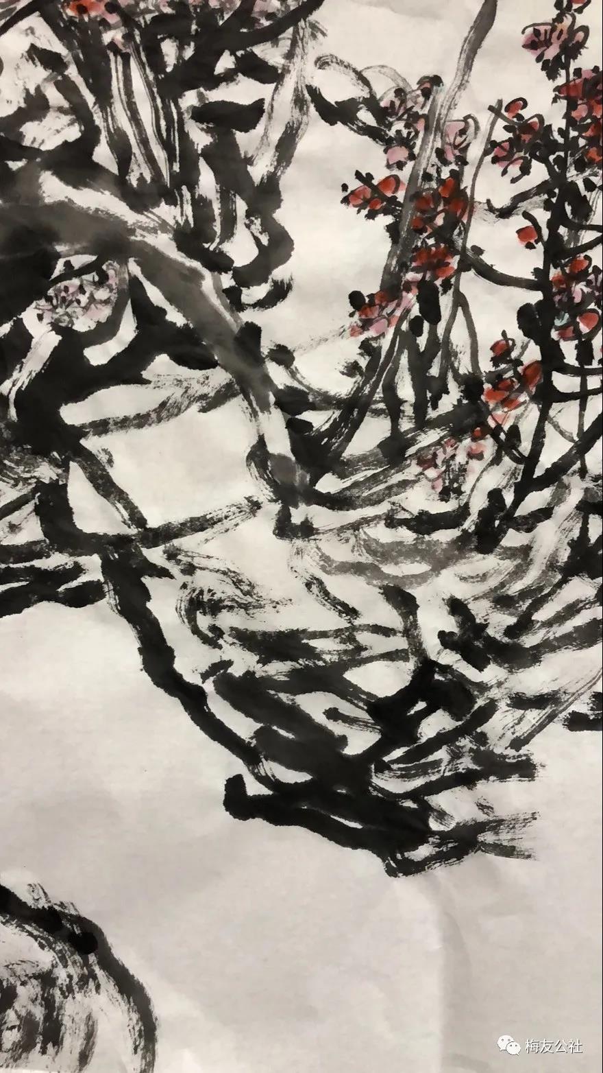 唐建老師每年對元梅的認(rèn)識都是不同的,他的作品也是不斷增進(jìn)和升華,唐老師一直秉承文人畫的審美理想,他注重以線造型,在他的畫中以中鋒用筆,筆筆皆是書法的線條,這得益于他多年的篆隸基礎(chǔ),唐老師是勤奮的,他強(qiáng)調(diào)書法的重要性,并堅持每日練習(xí),他深刻地領(lǐng)會到趙孟頫“書畫同源”的繪畫理念,并在作品中體現(xiàn)出來。在學(xué)習(xí)古人筆墨的基礎(chǔ)上,他以雙鉤的技法表現(xiàn)梅花,試圖在表現(xiàn)形式上有新的突破。唐老師還善于作詩,這是當(dāng)今時代所難得的,在他尋梅、訪梅、畫梅、護(hù)梅的十幾年間,作了幾百首詩,這些詩是唐老師真情實(shí)感的表達(dá),如今年所作的《憶永平》、《晨起探梅》、《詠瀾滄江畔大木廠宋梅》等,這些詩無不體現(xiàn)出他對梅的“癡情”和“熱戀”,也是多年尋梅、護(hù)梅的艱辛歷程的沉淀和感悟,正如他在詩中所言:“何人十載博南客,踏遍蒼山覓玉葩。霜結(jié)千年香徹骨,半生相識是梅花?!碧评蠋煂⑺脑娨踩谌肜L畫中,詩書畫印融為一體,開創(chuàng)了獨(dú)特的繪畫語言和新的繪畫風(fēng)貌。只有這種富有真情實(shí)感的作品才會感染人、打動人、深入人心。