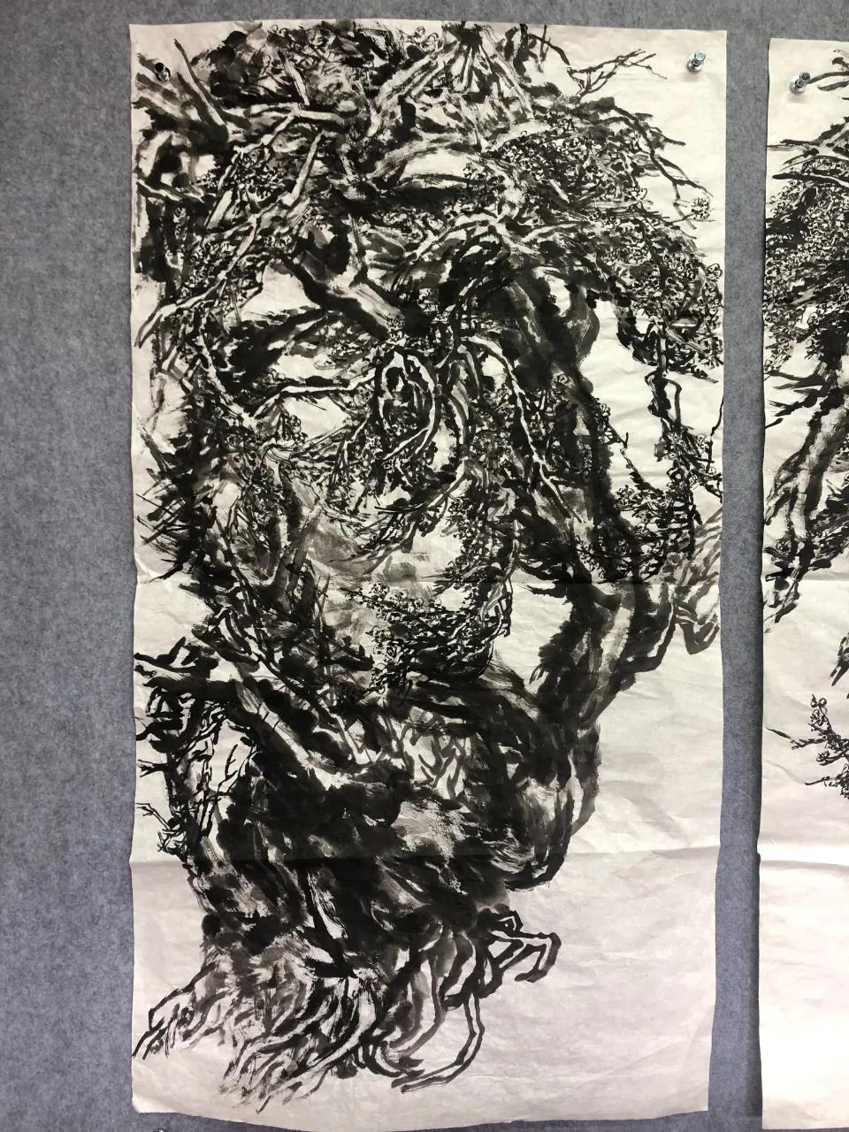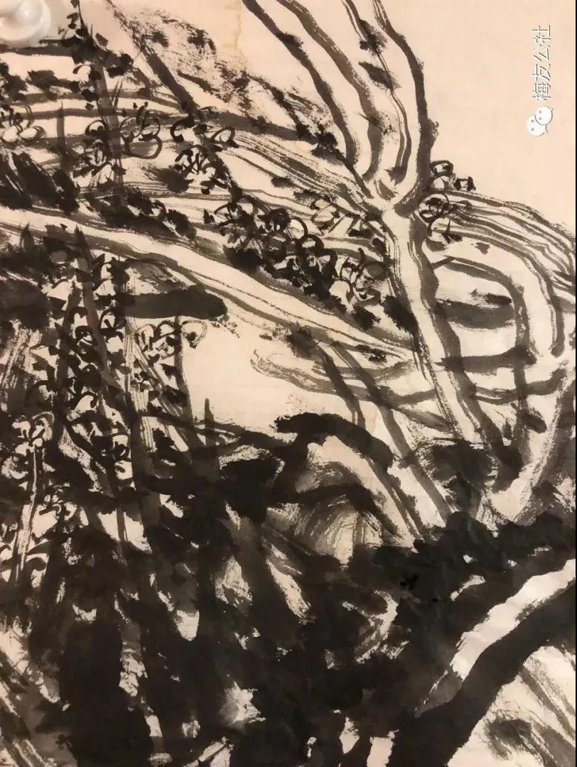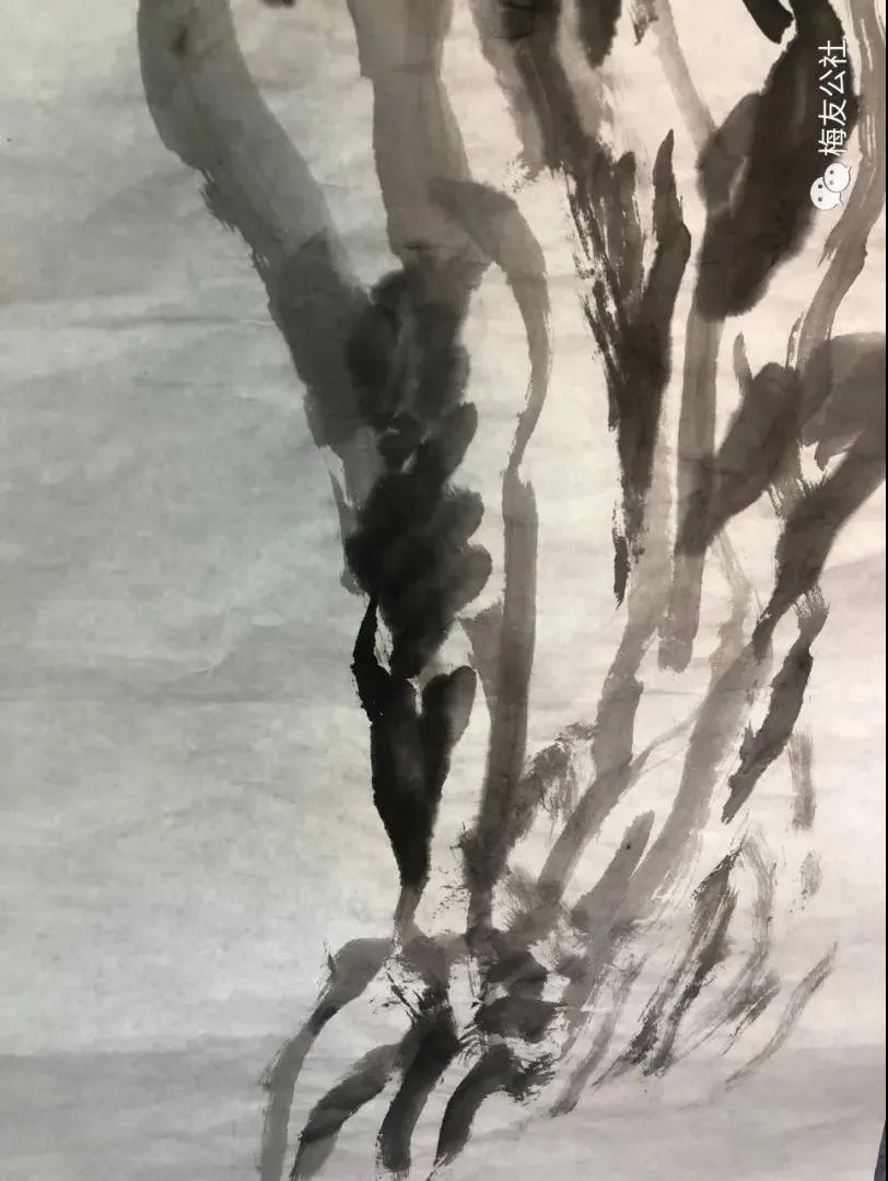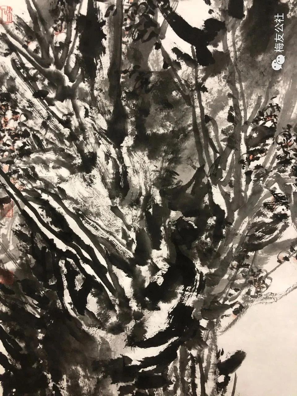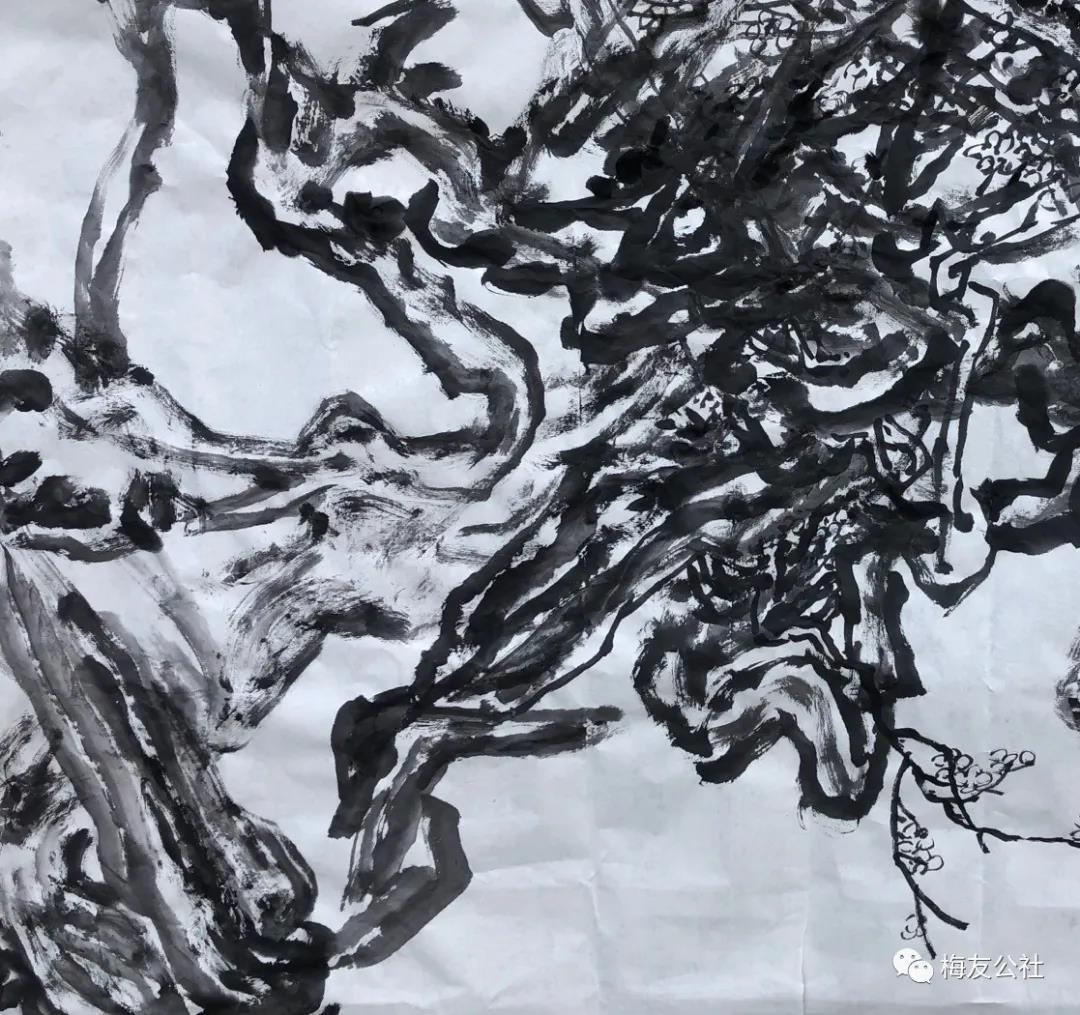唐建老師每年對元梅的認(rèn)識都是不同的,他的作品也是不斷增進(jìn)和升華,唐老師一直秉承文人畫的審美理想,他注重以線造型,在他的畫中以中鋒用筆,筆筆皆是書法的線條,這得益于他多年的篆隸基礎(chǔ),唐老師是勤奮的,他強(qiáng)調(diào)書法的重要性,并堅持每日練習(xí),他深刻地領(lǐng)會到趙孟頫“書畫同源”的繪畫理念,并在作品中體現(xiàn)出來。在學(xué)習(xí)古人筆墨的基礎(chǔ)上,他以雙鉤的技法表現(xiàn)梅花,試圖在表現(xiàn)形式上有新的突破。唐老師還善于作詩,這是當(dāng)今時代所難得的,在他尋梅、訪梅、畫梅、護(hù)梅的十幾年間,作了幾百首詩,這些詩是唐老師真情實(shí)感的表達(dá),如今年所作的《憶永平》、《晨起探梅》、《詠瀾滄江畔大木廠宋梅》等,這些詩無不體現(xiàn)出他對梅的“癡情”和“熱戀”,也是多年尋梅、護(hù)梅的艱辛歷程的沉淀和感悟,正如他在詩中所言:“何人十載博南客,踏遍蒼山覓玉葩。霜結(jié)千年香徹骨,半生相識是梅花?!碧评蠋煂⑺脑娨踩谌肜L畫中,詩書畫印融為一體,開創(chuàng)了獨(dú)特的繪畫語言和新的繪畫風(fēng)貌。只有這種富有真情實(shí)感的作品才會感染人、打動人、深入人心。