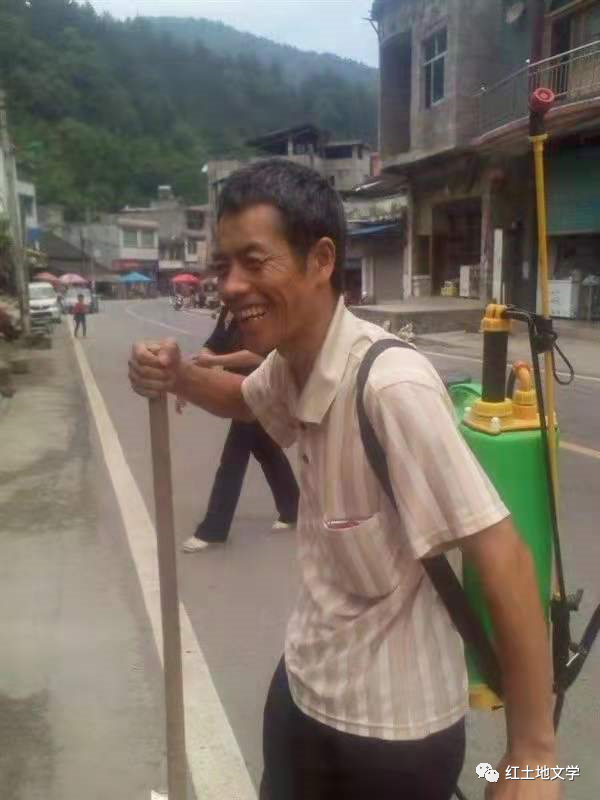 張育漢是我三十年前在丁市鎮酉陽三中的高中補習時的同學,八十年代末,全國各地中小學文學社團如雨后春筍破土而出,受語文老師兼班主任蔡老師和當時同住學校的莾漢詩歌創始人李亞偉老師的影響,我們也悄悄地寫起了詩歌。詩歌給我們生活增添了不少的樂趣。后來我們畢業后各自回到了農村,我參與創辦私立中學繼續弄文學社一直到現在,還在弄,也就是我們今天這個歷經三十年風風雨雨正沐浴陽光雨露茁壯成長的紅土地文學社。張育漢畢業后,早些年我們幾乎斷了聯系,據說是外出打工,后來又聽說重病住院,差點離開了人世,經濟和身體的雙重重壓讓他重新審視自己,把業余愛好用在詩歌創作上打發余下的光陰。去前年,一個偶然的機會,在去酉陽的車上見到再次見到老同學張育漢,從交談中得知他的近況,他在家鄉酉陽天館街上開了一家專賣紅白喜事物品的小店,街道辦事處安排他當了一名鄉村環衛工人,業余仍對詩歌筆耕不輟,但從未見他投過稿。于是我把他又拉入我們紅土地文學社做了一名編委,使我們又走在一起了。