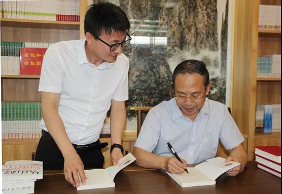 趙德發(fā)(右)向“彥林書屋”捐贈個人珍藏著作