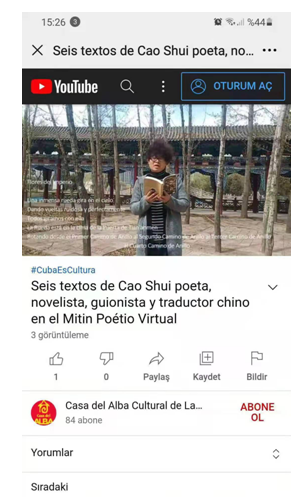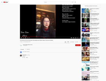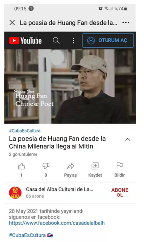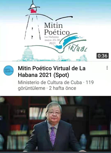 由古巴詩歌文化中心、古巴作家協(xié)會、古巴圖書研究所和古巴文化部共同舉辦的第二十六屆哈瓦那國際詩歌節(jié)于2021年25日至30日舉辦。因新冠役情原因,參與的世界各國詩人通過Facebook實時連接到哈瓦那國際詩歌節(jié)現(xiàn)場,有的提前發(fā)送他們的視頻給組委會,這些視頻有10分鐘用于詩歌朗誦,20分鐘用于論壇,反思詩歌寫作和我們時代的巨大挑戰(zhàn)。