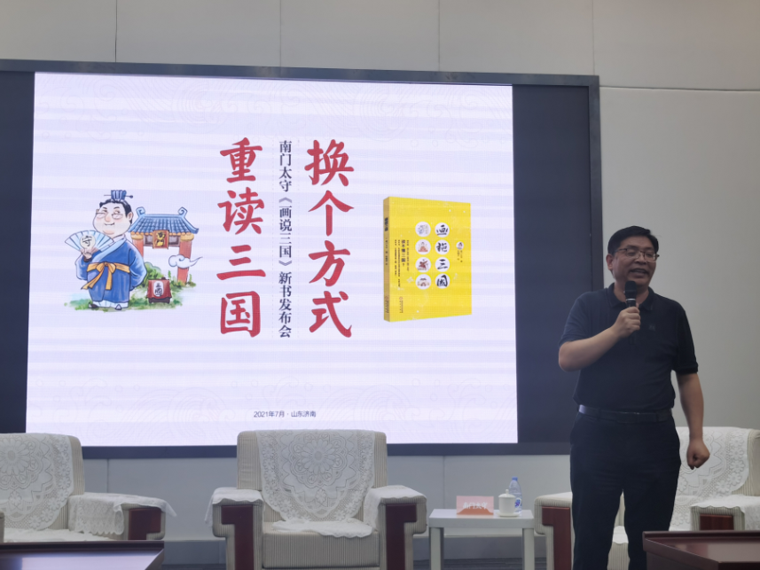 發布會上,南門太守做了名為《換個方式重讀三國》的演講,他提到,用圖畫的形式敘說三國歷史,需要內容上更加簡潔,形式上更適合閱讀的快節奏。畫說歷史,也需要對歷史進行一些“加工”,但內在里保持的是一貫的嚴肅與嚴謹。總的說來,就是以正史的原則和現代的眼光去講有趣味的三國故事。讓更多的讀者關注三國、喜歡三國,讓讀者接受起來更容易,讓三國歷史更有吸引力。他還講述了三國文化在中國的影響力,分析三國的時代精神與影響;介紹他研究三國文化的初衷及三國題材作品寫作的歷程與寫作風格變化。他說,人們愛三國,最主要的原因還是三國這個時代有著鮮明的時代精神:一是忠于國家,二是忠于人民,三是忠于事業,四是忠于友情。而這種精神又恰好契合了中華民族勇于奮斗、自強不息的特點,因而為后世以及現在的人們所珍視,這也是我們讀三國應該著重去讀的地方。