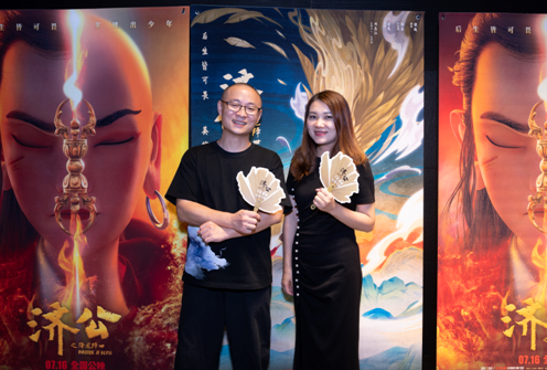 7月14日晚19:30,動畫電影《濟公之降龍降世》在深圳金逸影院寶安大仟里店舉行第二場品鑒會,導演喬彧、監制金曉敏與觀眾互動,觀影現場觀眾淚濕衣襟,“這是今年暑假最感人的動畫電影了?!庇袔е⒆觼碛^影的家長說。