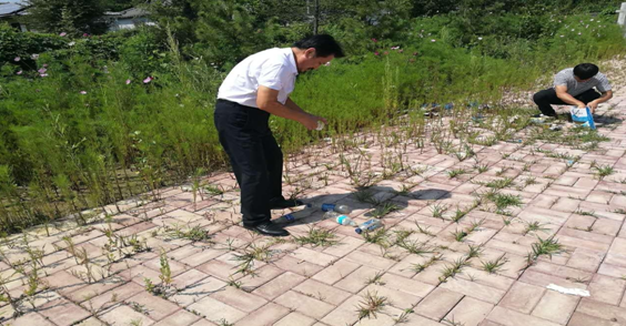 記得那是盛夏的一天下午一點(diǎn)多鐘,董配永帶著夫人和兩個(gè)孩子,與大家一起頂著烈日酷暑,沿著通往二連的砂石路撿垃圾。走到大約一半的時(shí)候,他指著路北水溝說(shuō),那里好像有一大塊塑料布。我們幾個(gè)人圍攏過(guò)來(lái)順著他的手指一看,路溝北岸果然有一塊灰乎乎的塑料布,一角搭在岸邊,其余的浸在水里。水溝有兩米來(lái)寬,溝邊野草稀疏,有的長(zhǎng)滿芒刺,人們不敢近前。這時(shí),只見他拿著一根短棍,撥開荊棘,一只腳踩到水邊,另一只腳跨在路上,斜著身體去挑那塊塑料布。無(wú)奈溝寬棍短夠不到,前腳還險(xiǎn)些陷進(jìn)泥水里。當(dāng)時(shí)的駐綏辦主任孫強(qiáng)見狀趕緊拉住他的另一只手,又有人拉著孫強(qiáng)的手。就這樣,三個(gè)人手拉手,董配永身子幾乎傾斜到水中央,費(fèi)好大勁才把那塊塑料布挑了出來(lái)。