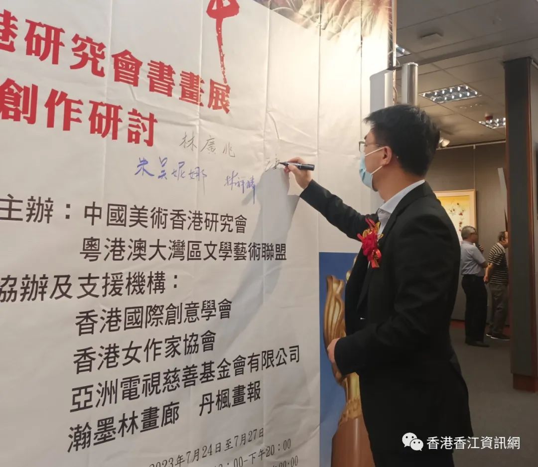 出席本次活動的主要嘉賓有:香港中華總商會永遠榮譽會長、GBS林廣兆先生,香港特別行政區(qū)黃埔軍校同學會會長、香港退伍軍人協(xié)會會長蔣楨,中聯(lián)辦宣文體部副處長王新榮,香港國際創(chuàng)意學會名譽主席吳妮娜女士,香港女作家協(xié)會會長、本次畫展組委會主席何佳霖女士,粵港澳大灣區(qū)文學藝術聯(lián)盟秘書長王慧娟女士,港漢皇拍賣公司董事長劉毅先生,香港中西區(qū)婦女會主席趙華娟女士 MH,中國美術香港研究會會長徐藤等。