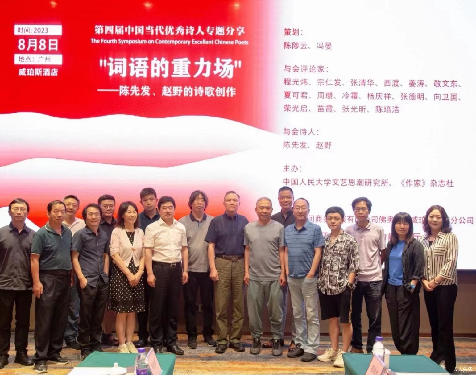 8月8日,由中國(guó)人民大學(xué)文藝思潮研究所、《作家》雜志聯(lián)合主辦,廣州同潤(rùn)商務(wù)發(fā)展有限公司佛奧廣場(chǎng)威珀斯酒店分公司承辦的第四屆中國(guó)當(dāng)代優(yōu)秀詩(shī)人專題"詞語(yǔ)的重力場(chǎng)"——陳先發(fā)、趙野的詩(shī)歌創(chuàng)作暨“當(dāng)代詩(shī)歌的常與變”研討分享在廣州威珀斯酒店舉行。與會(huì)專家首先圍繞詩(shī)人陳先發(fā)和趙野的詩(shī)歌創(chuàng)作進(jìn)行了坦誠(chéng)、深入的討論。